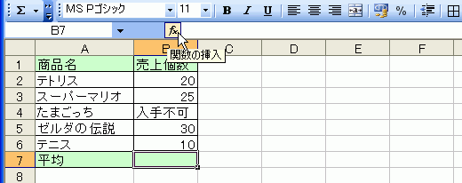 - 平均値を求めたいセルを選択