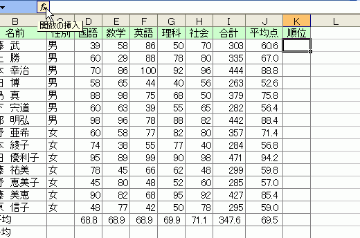 - [関数の挿入]ボタンをクリック