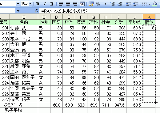順位を求めるにはRANK関数を利用します。