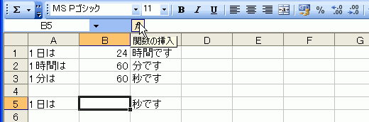 - 1日は24時間、1時間は60分、1分は60秒とそれぞれ値を入力しておく