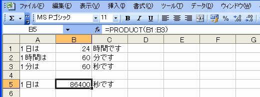 すべての値の積を求めるには、PRODUCT関数を利用します。