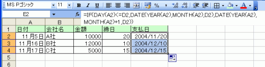 - 数式コピーをすることで、それぞれの支払日が求められました。