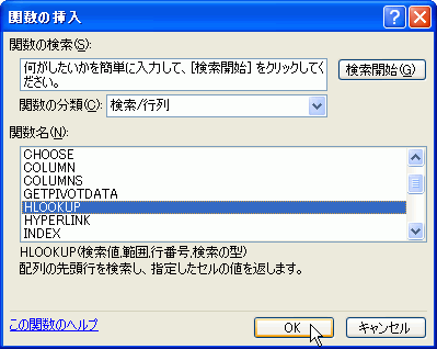 - 「HLOOKUP」を検索します。