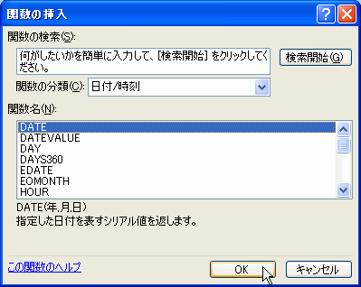 - 日付/時刻関数の中からDATE関数を呼び出します。