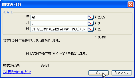 - 日:INT(20.8431+0.242194*(A1-1980))-INT((A1-1980)/4)