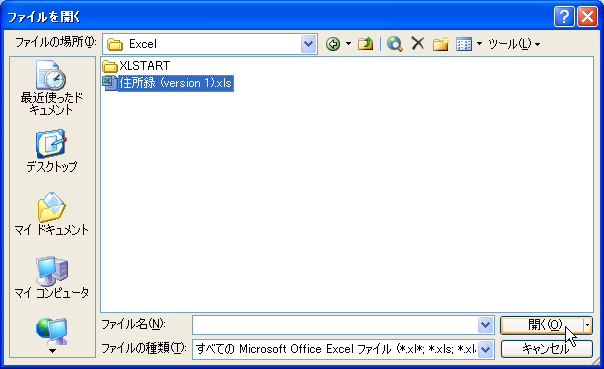 - [開く]をクリックします。