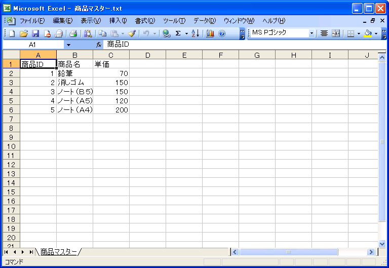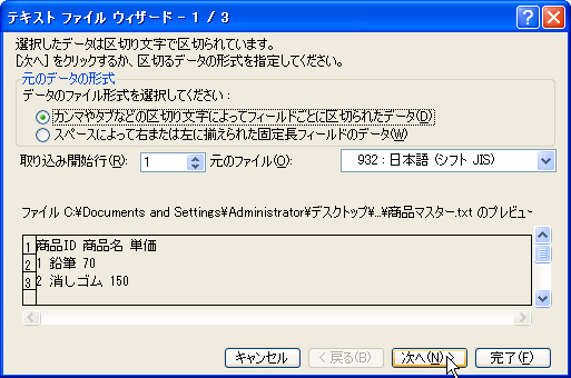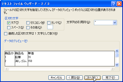 - Excel 2002:Excelへのデータのインポート > テキストファイルからのインポート