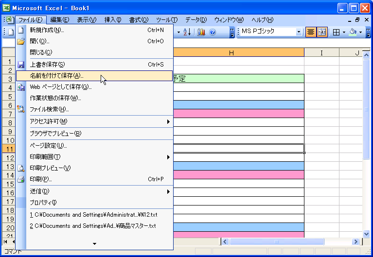 - [ファイル]メニューの[名前をつけて保存]をクリックします。