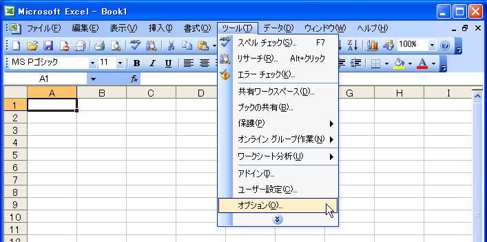 - [オプション]ダイアログボックスの[表示]タブをクリックします。