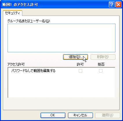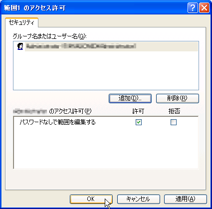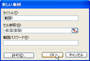 - [範囲の編集の許可]ダイアログボックスの[新規]ボタンをクリックします。