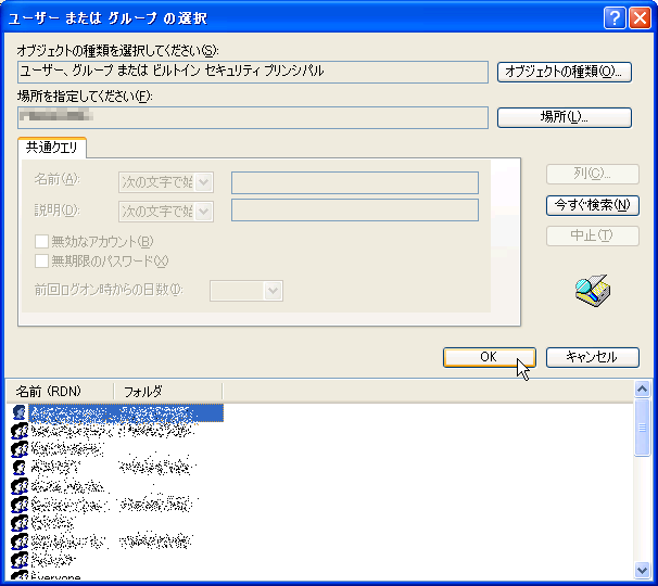 - 許可するユーザーを選択して[OK]をクリックします