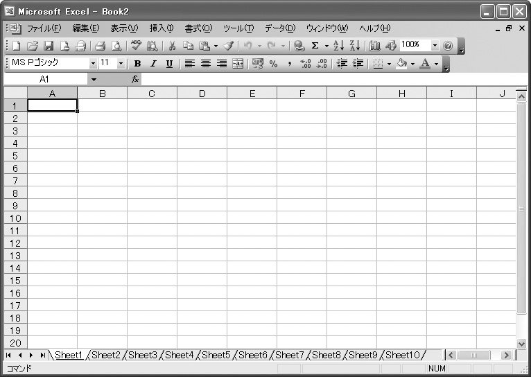 Excel 2003における既定の新しいブックのシート数は3です。新規作成時のシートの数を増やすには、オプション設定にて[新しいブックのシート数]の数値を変更しましょう。