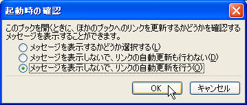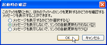 - 「メッセージを表示しないで、リンクの自動更新も行わない」を選択し、[OK]をクリック