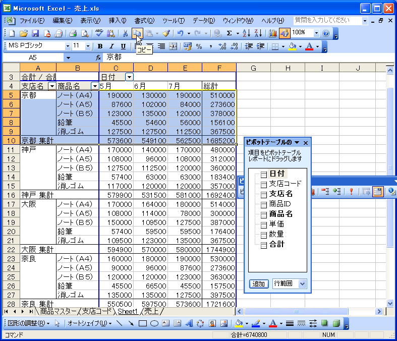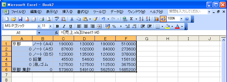 - リンク先のファイルにリンク元のデータが貼り付けられました