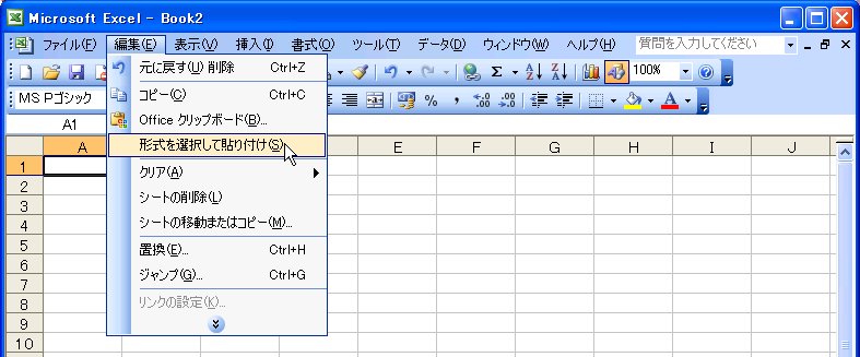 - [編集]メニューの[形式を選択して貼り付け]をクリックします