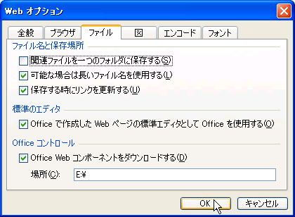 - [Webオプション]ダイアログボックスの[ファイル]タブをクリックします。