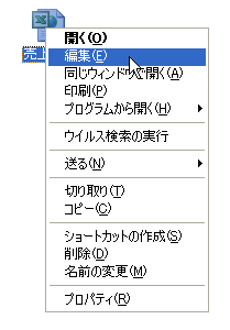 対象となるファイルを右クリックして、ショートカットメニューより[編集]をクリックします