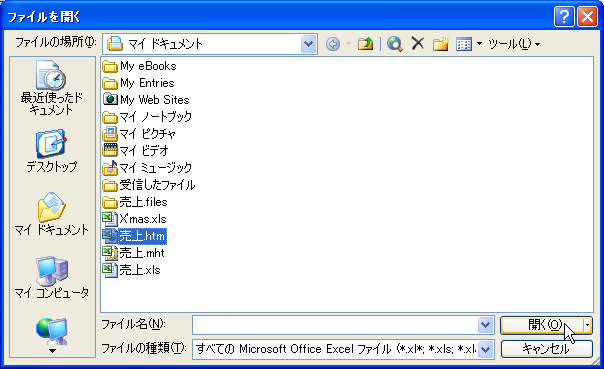 - [ファイルを開く]ダイアログボックスで、開きたいWebページを選択します。