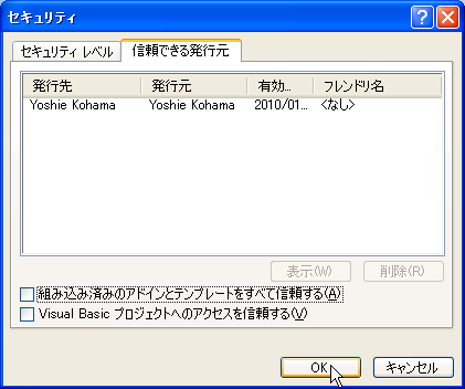 - [信頼できる発行元]タブをクリック
