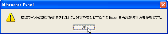 - 「Excelを再起動する必要があります」のメッセージが表示されたら、[OK]をクリックします