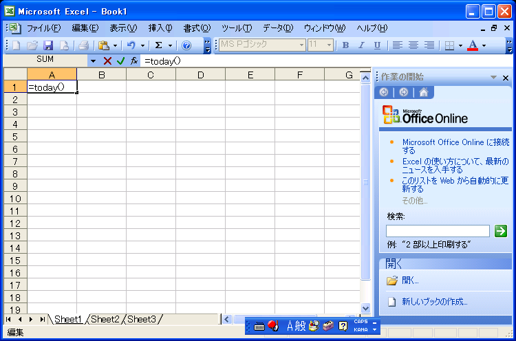 また、数式入力時にはステータスバーの文字が「編集」に変わります。