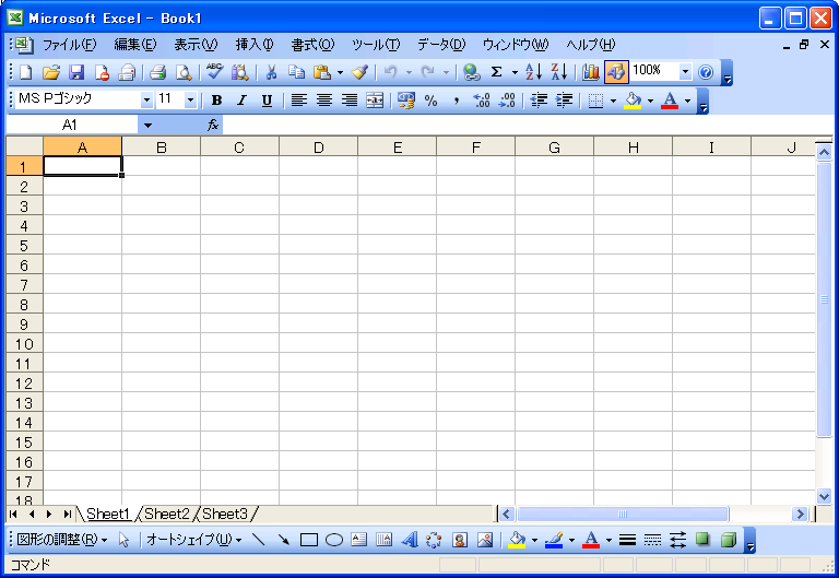 初期設定では、作業領域を広げるために、標準ツールバーと書式設定ツールバーが同じ行に横に並べて配置されるため、すべてのツールボタンが表示されません。