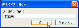 - [新しいツールバー]ダイアログボックスが表示されるので、ツールバー名を任意に指定します。