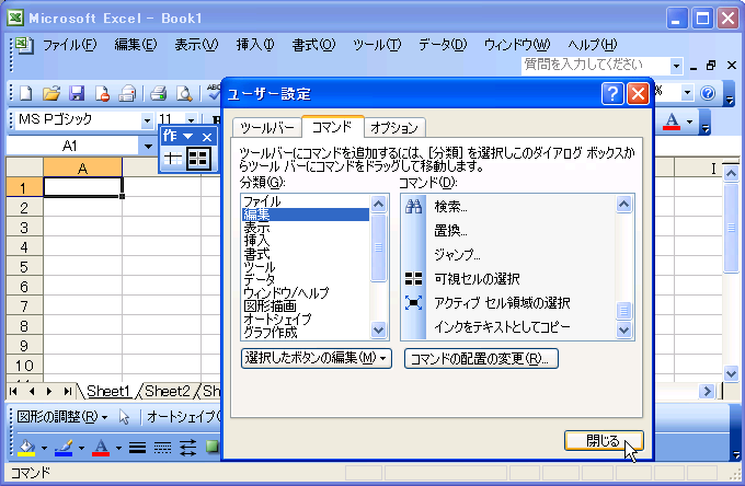 - ツールバーの作成が終了したい場合は、[閉じる]ボタンをクリックします