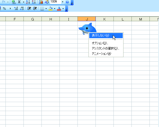 Officeアシスタントを右クリックして[表示しない]をクリックします。