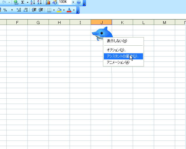 Excelの起動時に通常、Officeアシスタントであるイルカの「カイル」が表示されます。