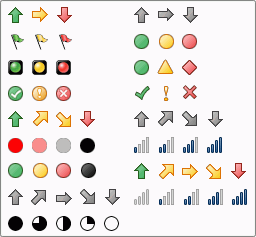 それそれのセルの最初にアイコンで表示されます。各アイコンがそれぞれの値を示します。