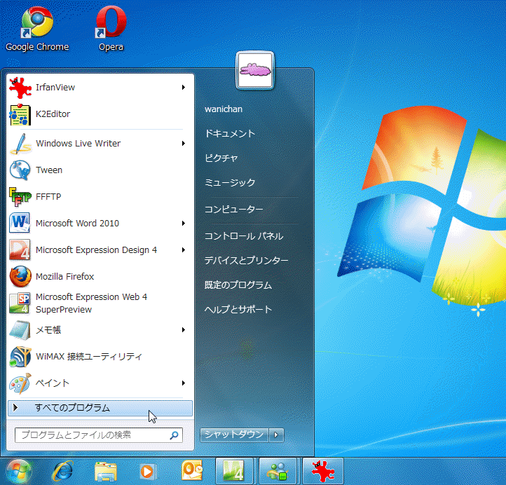 - [スタート]メニューをクリックしてスタートメニューから[すべてのプログラム]をクリックします。