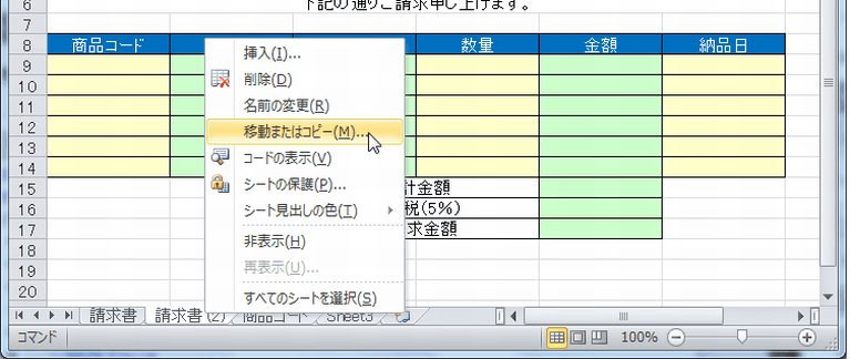 ブック内にシートをコピーする
