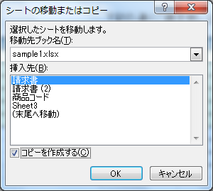 - [移動またはコピー]ダイアログボックスで[コピーを作成する]のチェックボックスを付けます。