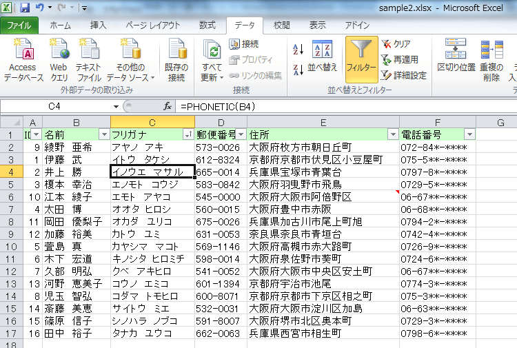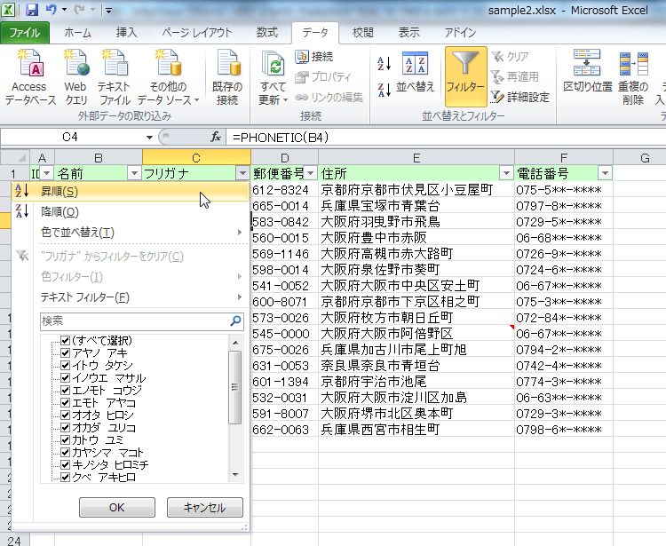 Excel 2007から、オートフィルターリストを使って昇順または降順に並べ替えができるようになりました。