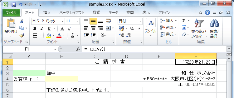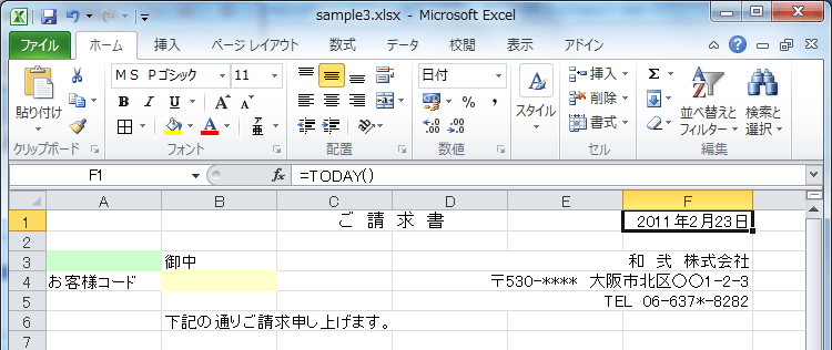 | 4 | お客様コード | 〒530-**** 大阪市北区○○1-2-3 | ||||