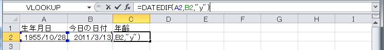 生年月日から年齢を求めるには、DATEDIF関数を利用します。