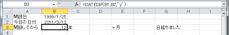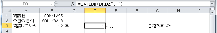 では、当サイトの開設日から本日までの経過年月日数をそれぞれ求めてみましょう。