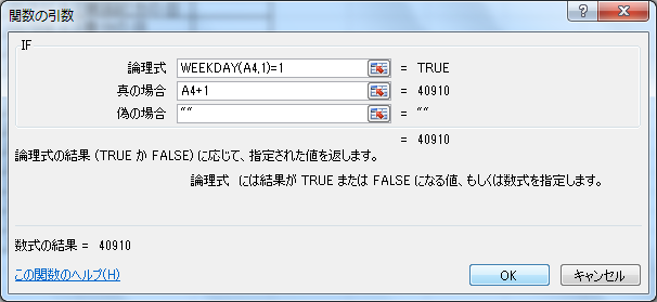 - [関数の引数]ダイアログボックスのそれぞれの引数に以下のように入力します。