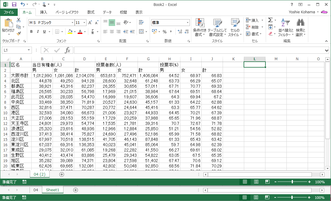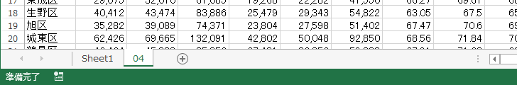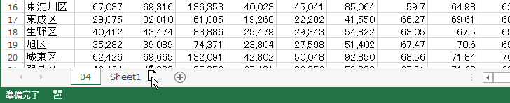 - Ctrlキーを押しながらドラッグすると、ワークシートがコピーされます。