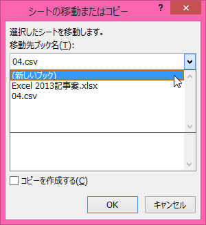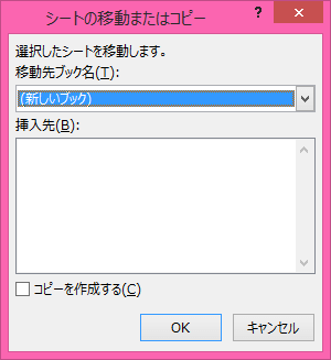 [コピーを作成する]にチェックを入れると元のブックのワークシートはそのまま残ります。新しいブックに移動するにはそのチェックが外れていることを確認して[OK]ボタンをクリックします。