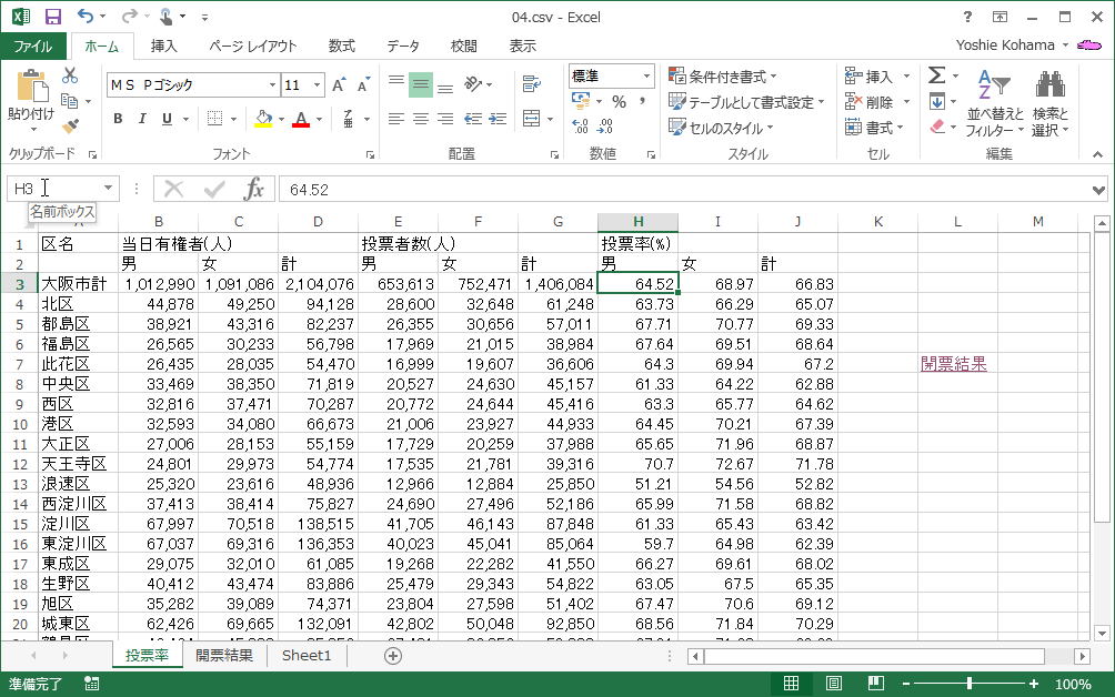 - 参照したいセルを選択して、名前ボックスにカーソルを移動します。