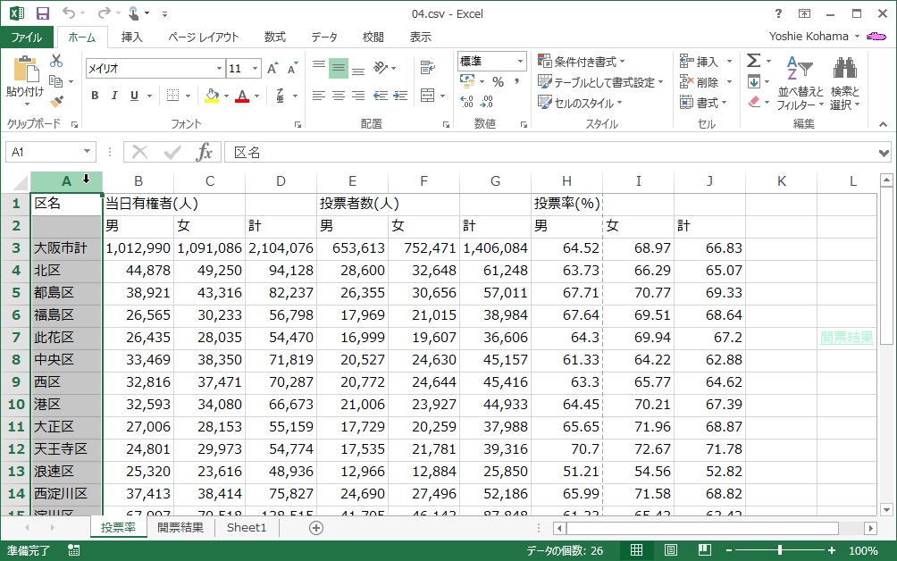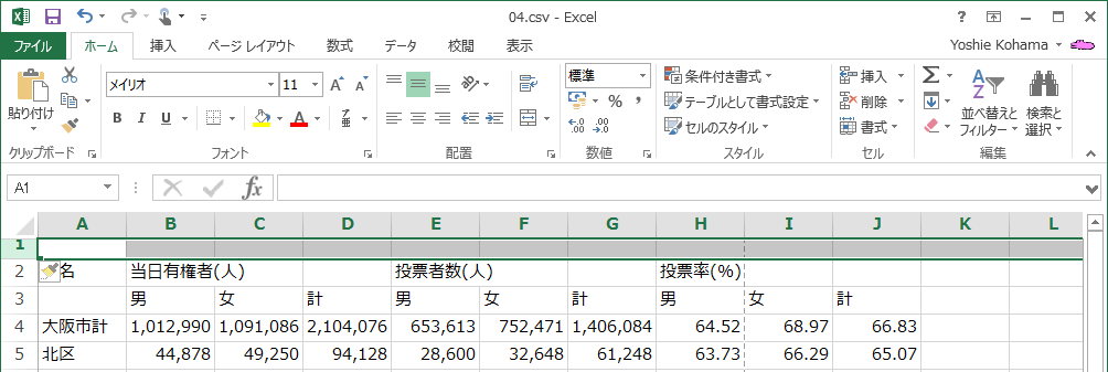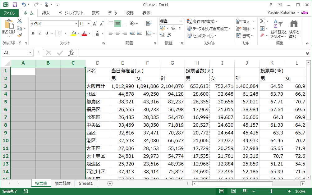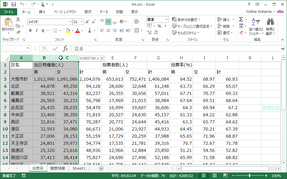 - そのまま右方向にドラッグすると複数列を選択できます。