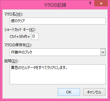 ※ショートカット キーを登録したマクロを含むブックが開いている間は、対応する Excel の既定のショートカット キーが無効になります。