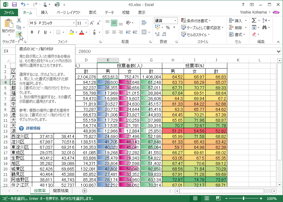 書式のコピー/貼り付けを使用するには