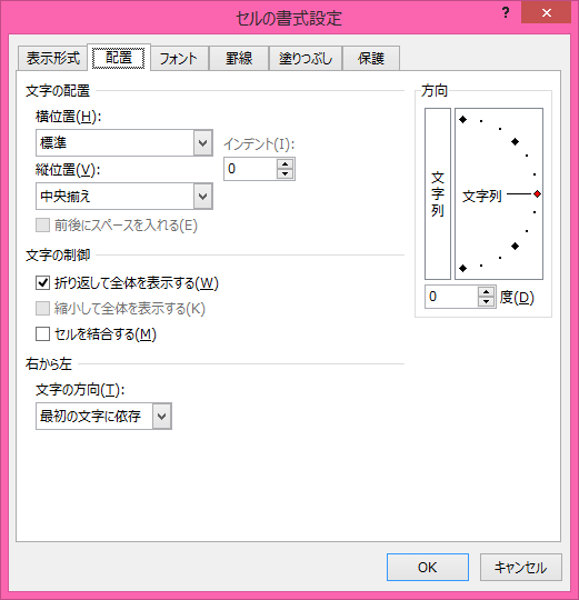 折り返して全体を表示されたセルは、縮小して全体を表示することができません。[セルの書式設定]ダイアログボックスの[配置]タブの[文字の制御]オプションでは、[折り返して全体を表示する]にチェックがついた場合は[縮小して全体を表示する]が無効になります。