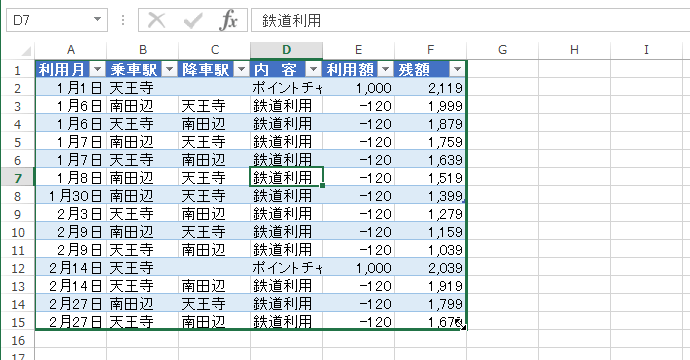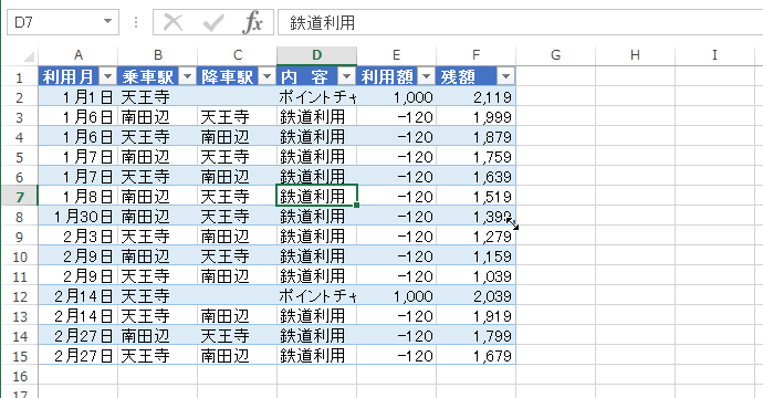 テーブルの右下辺のフィルをドラッグしてテーブルのサイズを変更することも可能です。