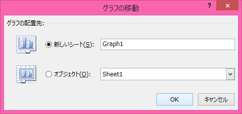 - [グラフの移動]ダイアログボックスよりグラフの配置先を選択して[OK]ボタンをクリックします。
