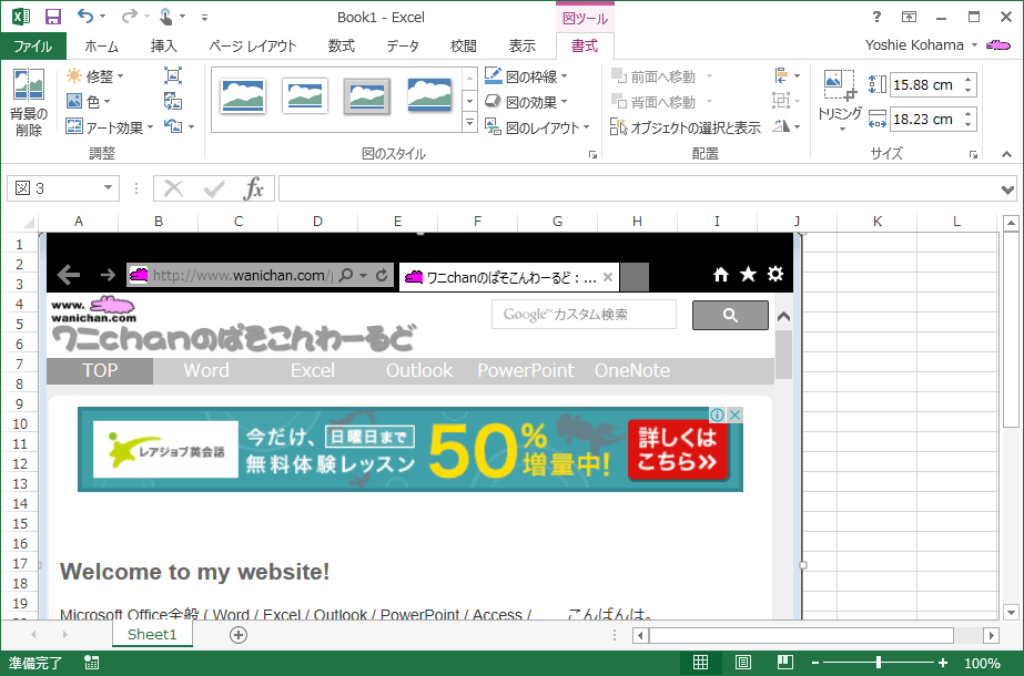 - デスクトップに開いているウィンドウのスナップショットをワークシートに追加