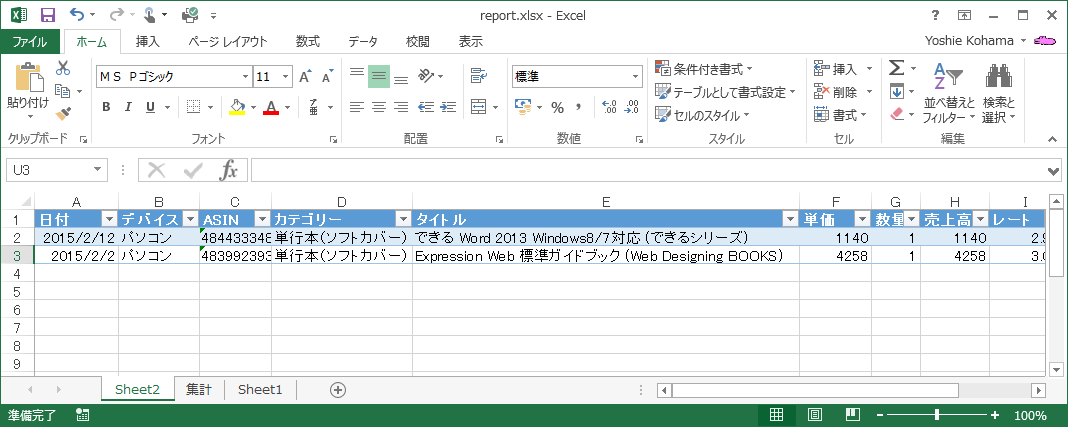 - 新しいワークシートに詳細データが表示されました。